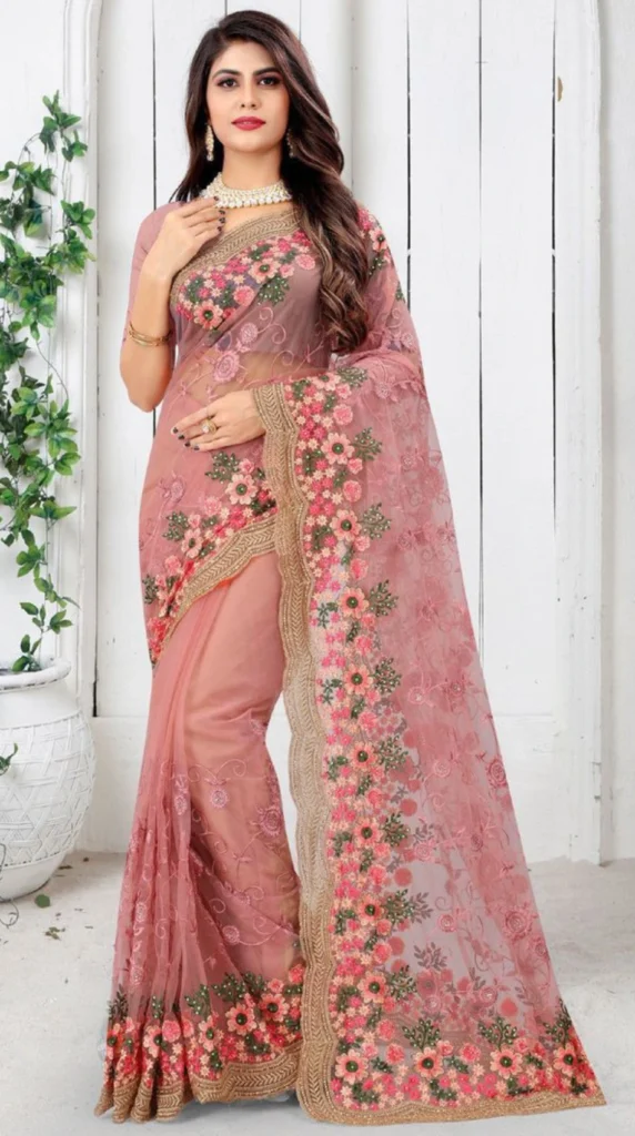 Pink Embroidered Bollywood Style Saree
