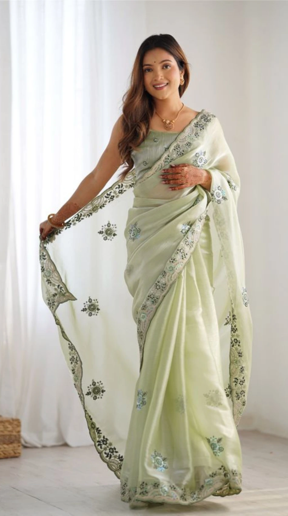 Women Green Embroider Saree