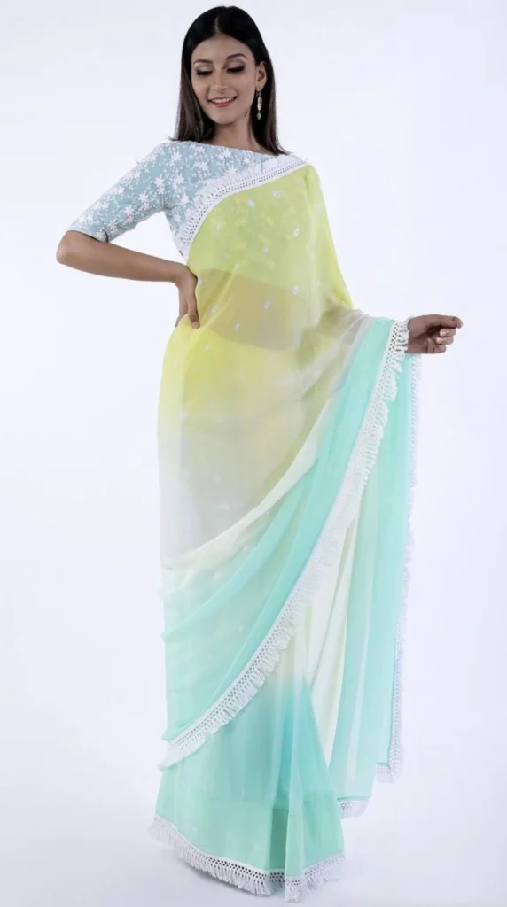Bridal wear saree Yellow Organza Ombre saree With Embroidered