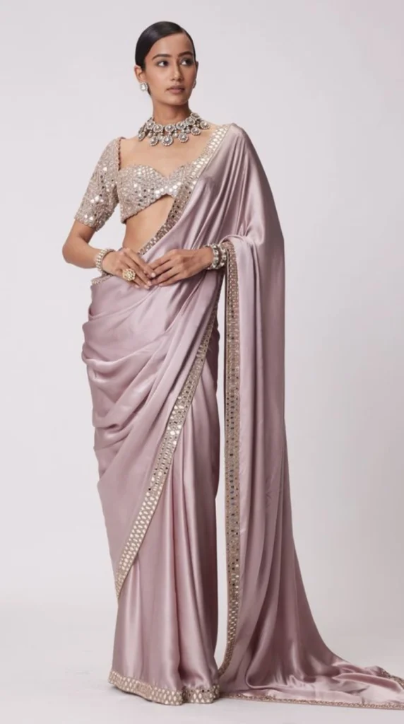 Light Pink Resham Embroidered with mirror work Saree