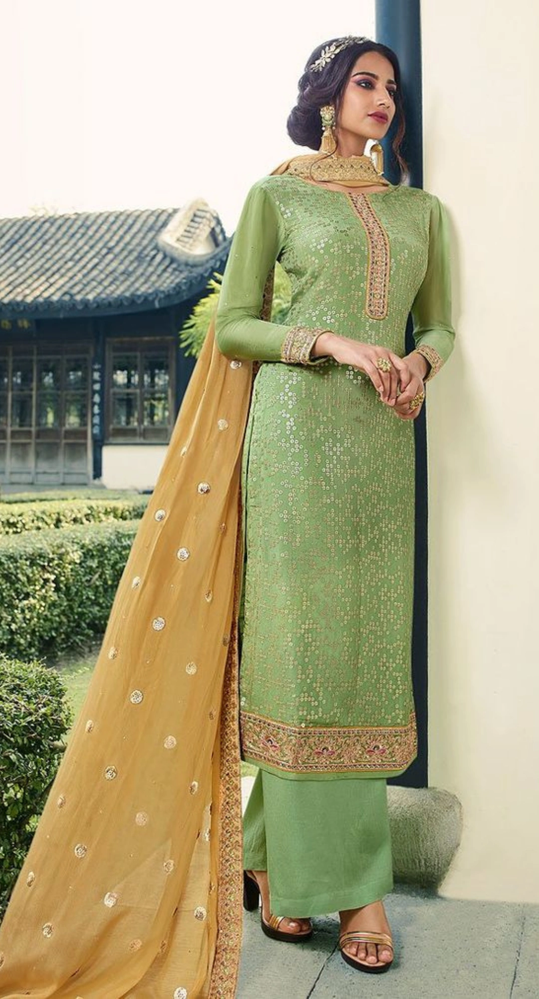 Green Patiala Suit With Dupatta all Sizes Rs.3,876/ Green Embroidered Palazzo Suit Rs.2,765/ Patiala Suit with DupattaRs.854/- Light Yellow Palazzo suit With Dupatta Rs.4,653/- Punjabi Patiala Salwar suitRs.2,890/- Black Palazzo Suit Set IndianRs.2,432/- Women Palazzo suits Rs.1,245/- Style Block suit Patiala Rs.2,653/-